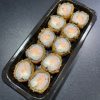 Hot empanado com farinha panko super crocante, recheado com salmão e cream cheese, envolto por uma lâmina de salmão, finalizado com uma pequena fatia de limão e molho tarê.