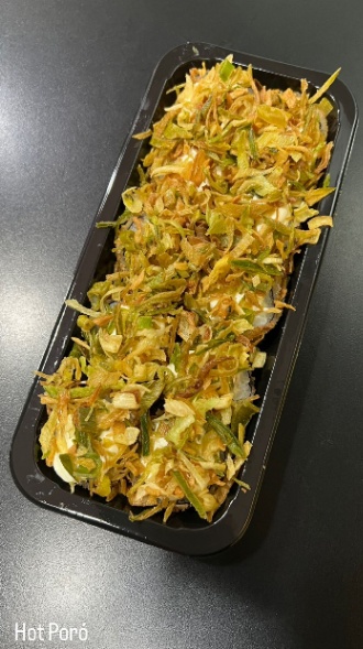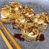 Sushi empanado Hot Filadélfia com cream cheese e Crispy de alho Poró.