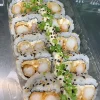 Enrolado com 20g de Manta de Salmão, 120g de Arroz Gohan, Nori, 60g de Camarão Rosa Cozido Empanado, Cream Cheese. Cortado em 10 Peças, Finalizado com Gergelim e Cebolinha Picada. Acompanha os Molhos: Shoyu, Teriaky e 1 Par de Hashi.